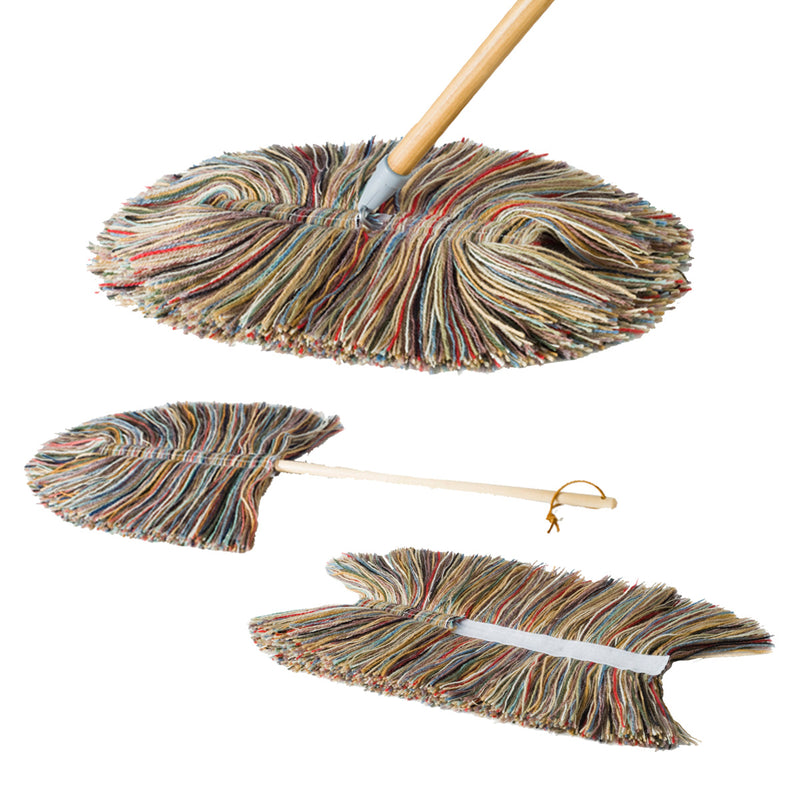 - Multi-colored dust mop made from genuine wool